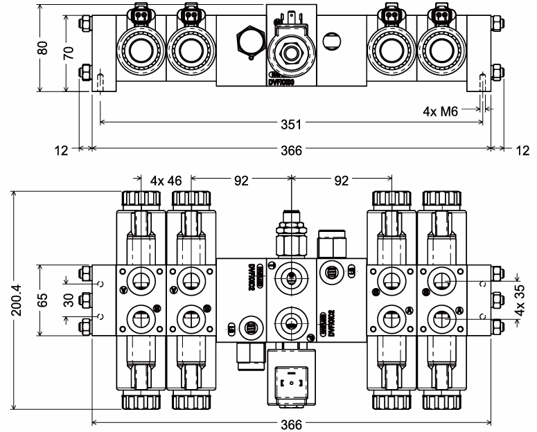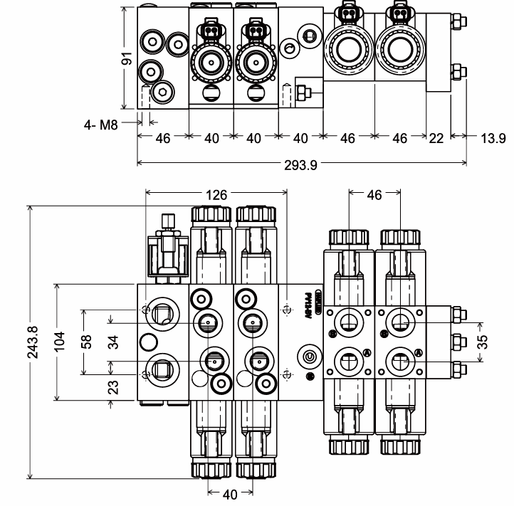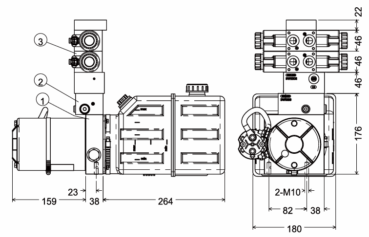 - 负载敏感定量泵进油联,可电磁卸荷;