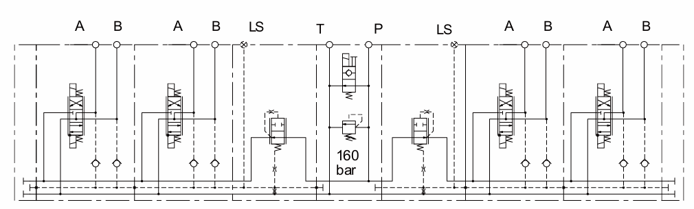 此示例仅为示意阀组的组合与使用,非实际回路,如需订购多路阀组请联系海弗液压出具与应用匹配阀组方案。