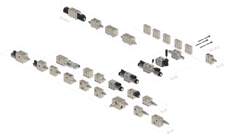 - 进油联模块[BVP]:从基础进油限压到配备三通补偿器、电磁卸荷等功能,我们提供了数十款标准模块供您挑选,材质及油口同样支持定制。