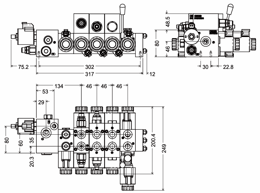 如图所示,BV多路阀支持与PV12、PV32、PV48组合使用,最大单片流量可达180 L/min。