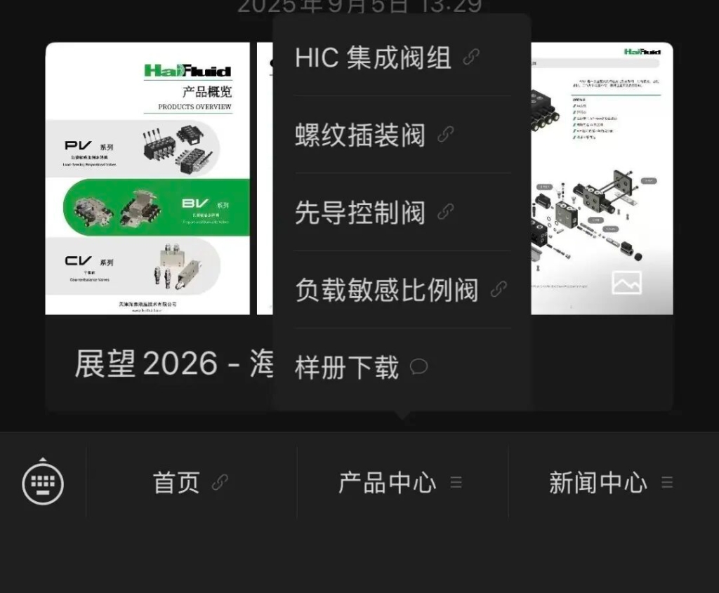亦可通过与海弗液压公众号的菜单栏>产品中心>样册下载中获取,此链接会实时更新,推荐此方式获取。