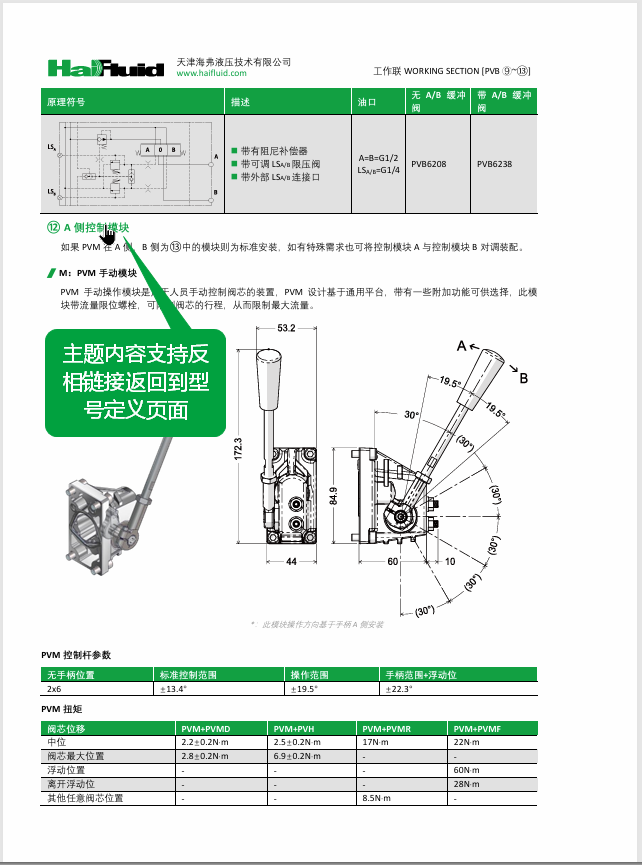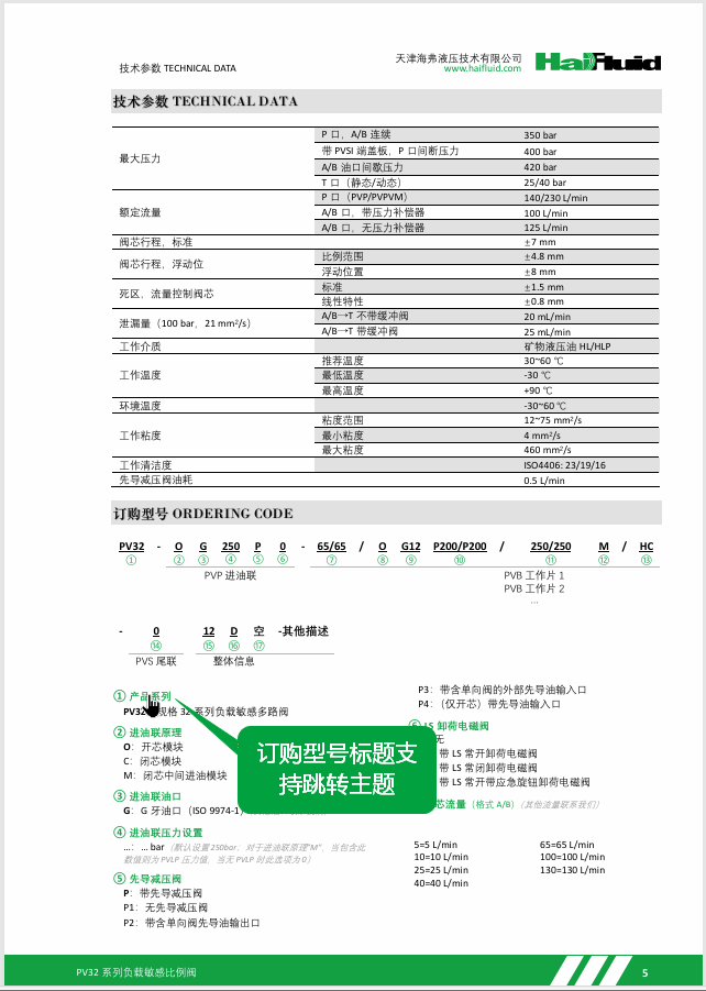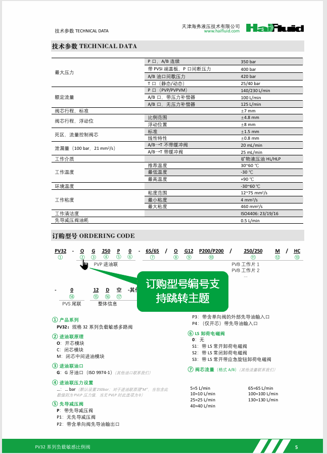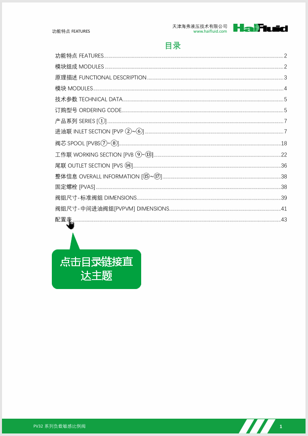 温馨提示:本文件属于海弗液压财产,未经授权,此文件任何部分不得以 任何方式翻版、编辑。本文件信息,数据仅用于描述产品,不针对特定行业的特殊条件或适用性,所提供信息不能代替自行判断核实的义务。产品会不断改进,如内容有所变更,恕不另行通知。